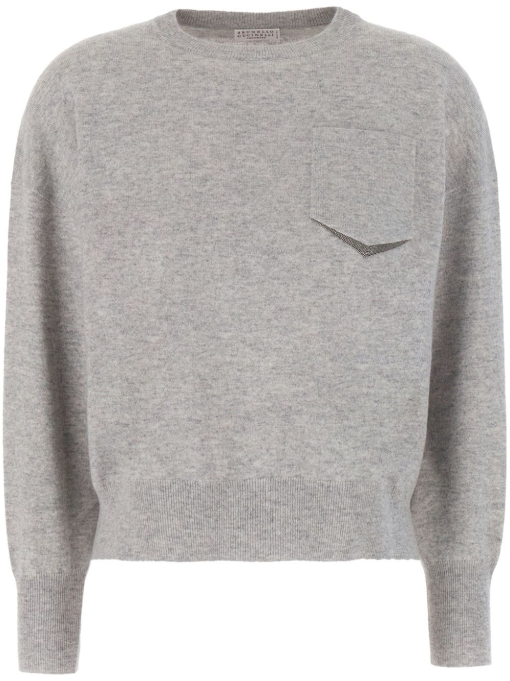 bead-detailed cashmere jumper Highlights - Grey - Cashmere - Fine knit - Bead detailing - Melange effect - Crew neck - Chest patch pocket - Long sleeves - Ribbed cuffs and hem Made in Italy Composition Cashmere 100%