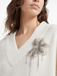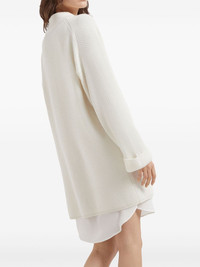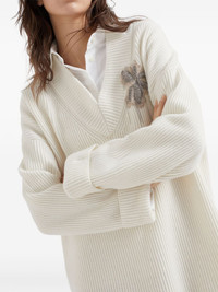 bead-embellished cashmere dress Highlights - Off-white - Cashmere - Ribbed knit - Bead embellishment - V-neck - Long sleeves - Turn-up cuffs - Straight hem Made in Italy Composition Cashmere 100% Washing instructions Read Manufacturer Guidelines