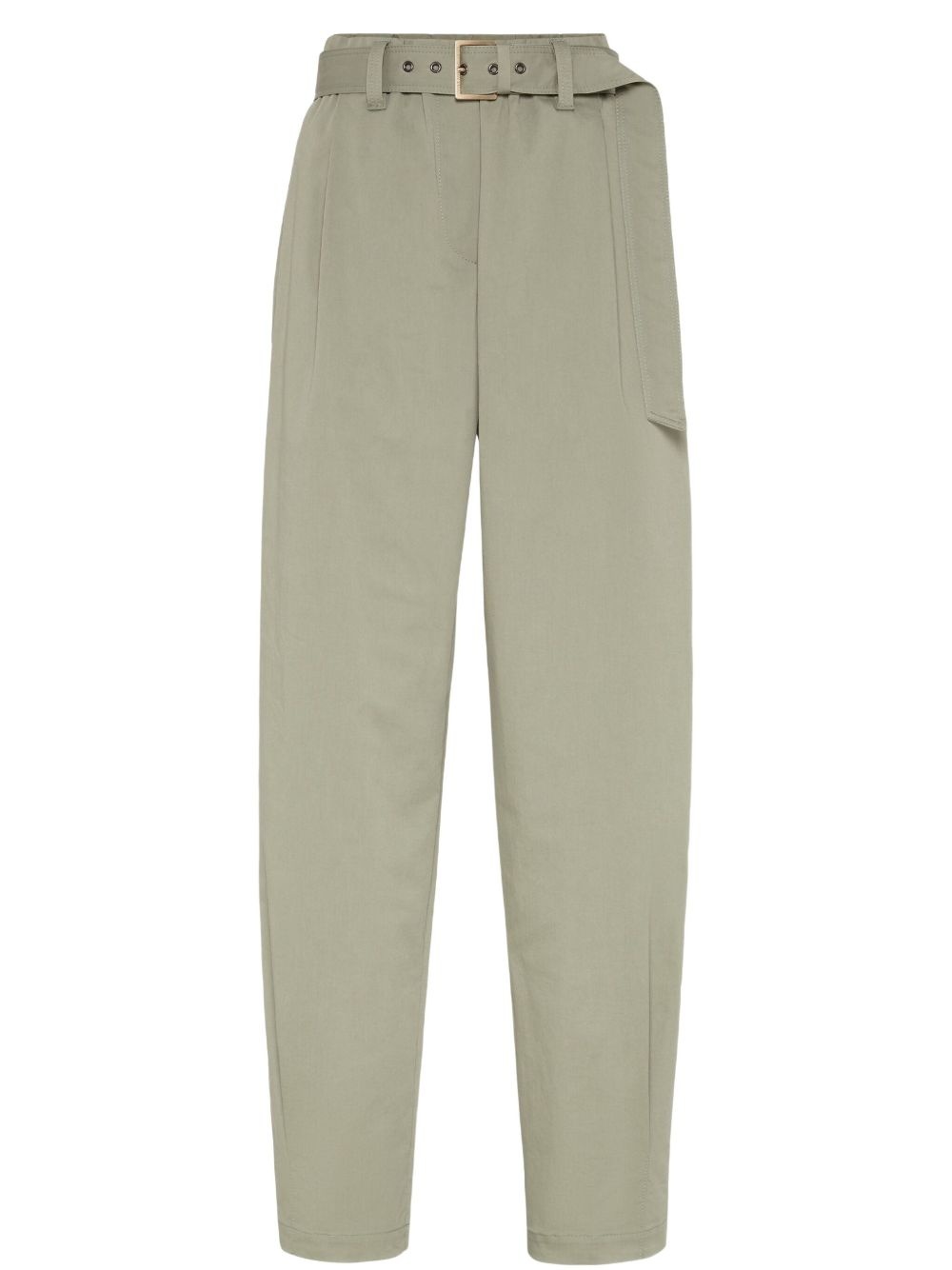 belted gabardine trousers Highlights - Sage green - Elasticated waistband - Two side welt pockets - Two rear jetted pockets - Belt loops Made in Italy Composition Cotton 93%, Elastane 7%