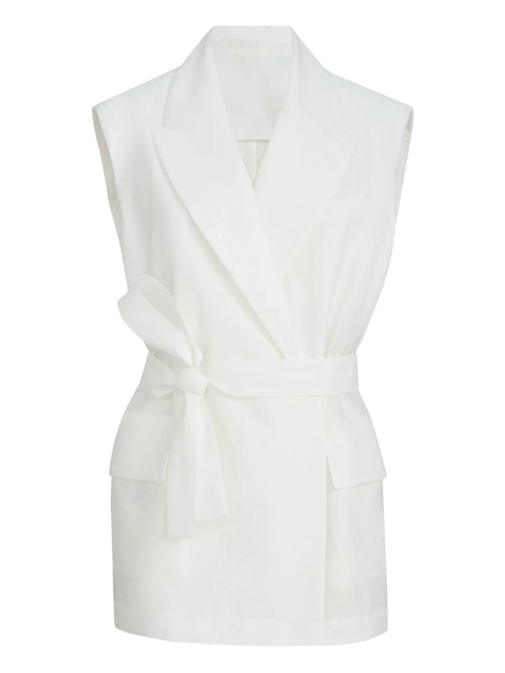 belted gilet Highlights - White - Belt - Lapel collar - Sleeveless - Welt pocket Made in Italy Composition Cotton 75%, Polyamide 25% Washing instructions Read Manufacturer Guidelines