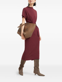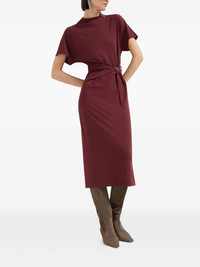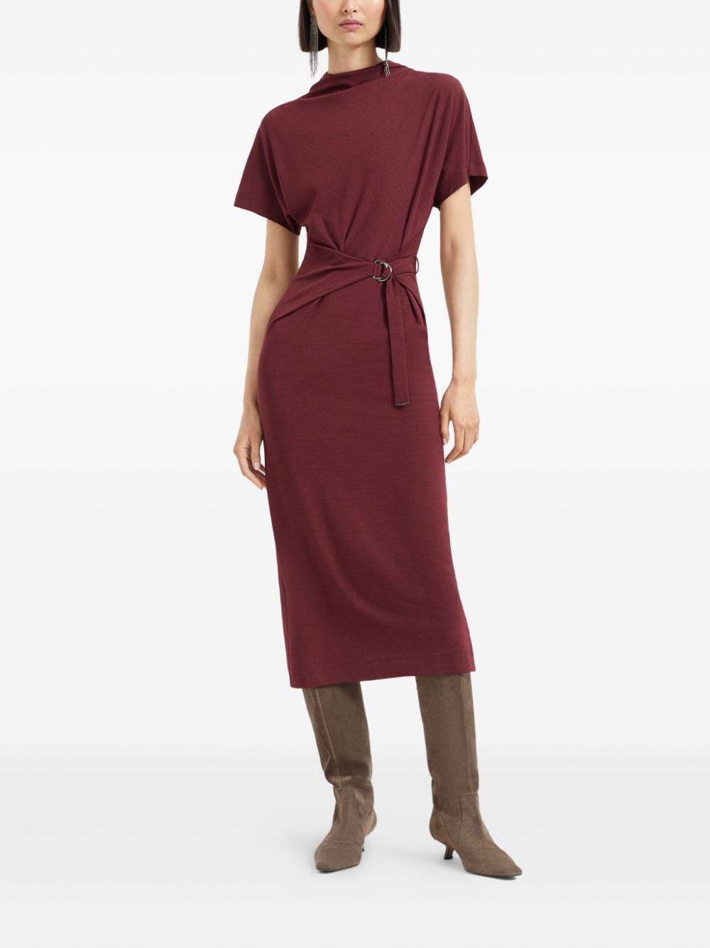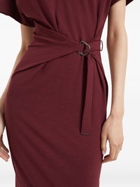 belted midi dress Highlights - Amaranth red - Short sleeves - Wrap effect - Belted waist - D-ring detail - Midi length Made in Italy Composition Wool 48%, Viscose 48%, Elastane 4% Washing instructions Read Manufacturer Guidelines