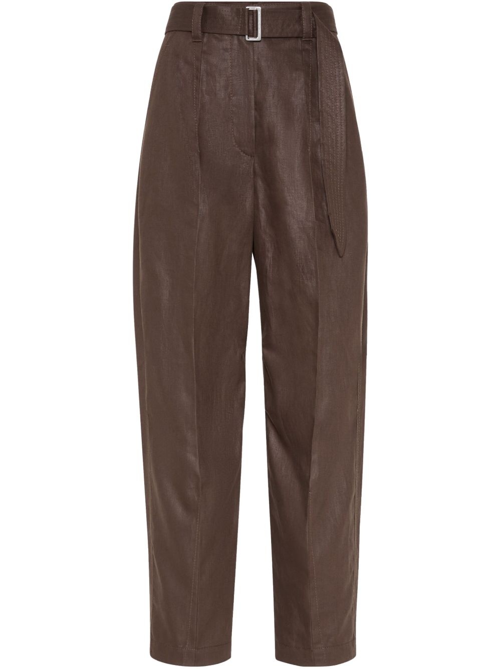 belted trousers Highlights - Chocolate brown - Concealed front fastening - Two side slit pockets - Two rear flap pockets - Pressed crease Made in Italy Composition Linen/Flax 100%