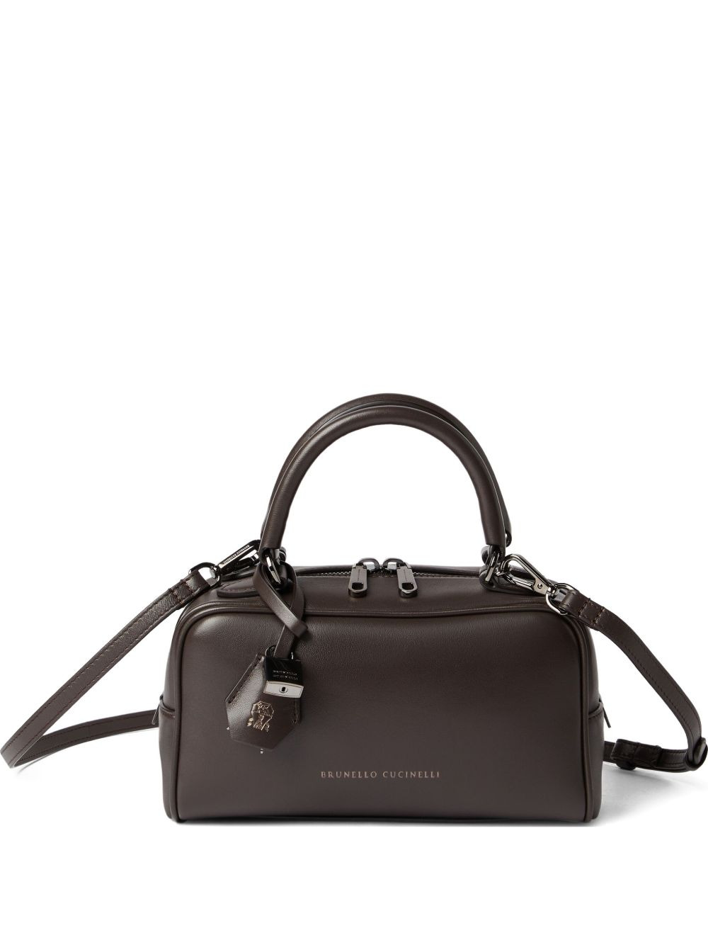 Boston Explorer top-handle padlock bag Highlights - Rust brown - Leather construction - Top handles - Padlock detail - Detachable shoulder strap - Zip fastening Made in Italy Composition Lining: Suede 100% Outer: Leather 100% SIZE & FIT Measurement DEPTH 3.74 in(9.5 cm) HEIGHT 6.29 in(16 cm) WIDTH 9.44 in(24 cm)