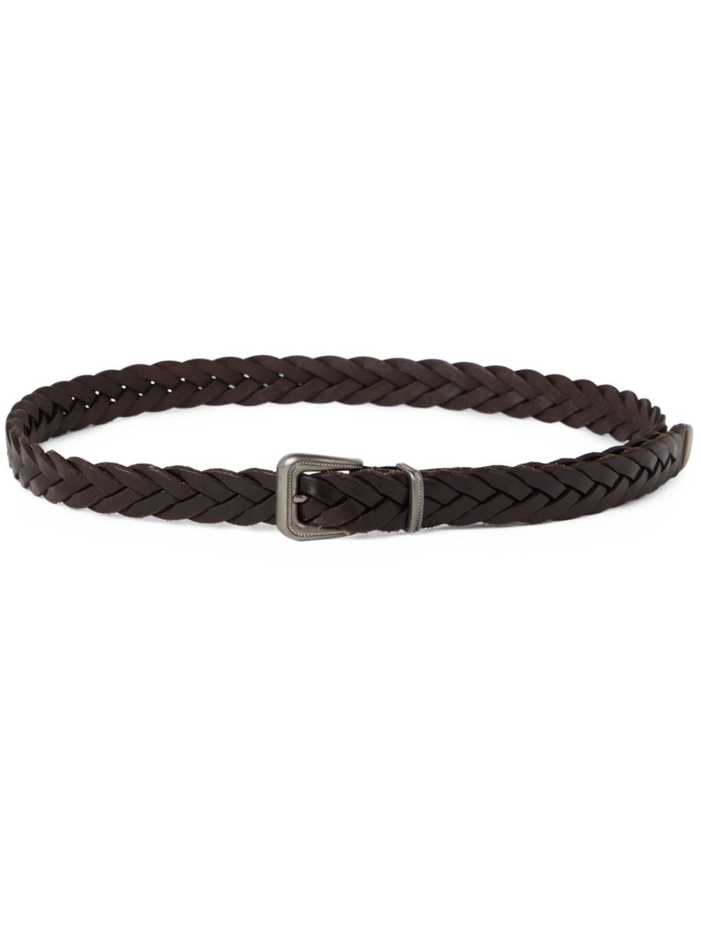 braided leather belt Highlights - Brown - Leather - Brushed effect - Braided strap - Buckle fastening - Adjustable fit Made in Italy Composition Leather 100% SIZE & FIT Measurement WIDTH 1.37 in(3.5 cm)