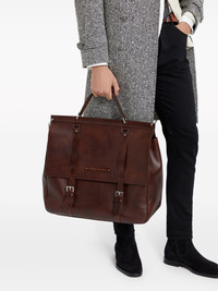 buckle-fastened leather tote bag Highlights - Plum purple - Leather - Smoothing finish - Logo patch to the front - Silver-tone hardware - Two buckle-strap fastenings - Detachable shoulder strap - Single top handle - Main compartment - Internal zip-fastening pocket - Rear zip-fastening pocket - Internal logo patch Made in Italy Composition Outer: Leather 100%