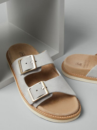 buckle-fastened suede sandals Highlights - Grey - Suede - Open top - Branded footbed - Buckle fastening - Double-strap design - Open toe - Rubber sole Made in Italy Composition Outer: Suede 100% Sole: Rubber 100% Lining: Suede 100%