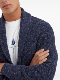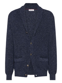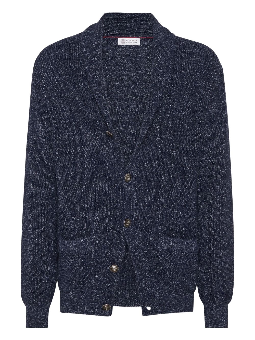 button-down cardigan Highlights - Navy blue - Front button fastening - Two front welt pockets - Shawl lapels - Long sleeves Made in Italy Composition Metal 100%, Cotton 75%, Linen/Flax 25%