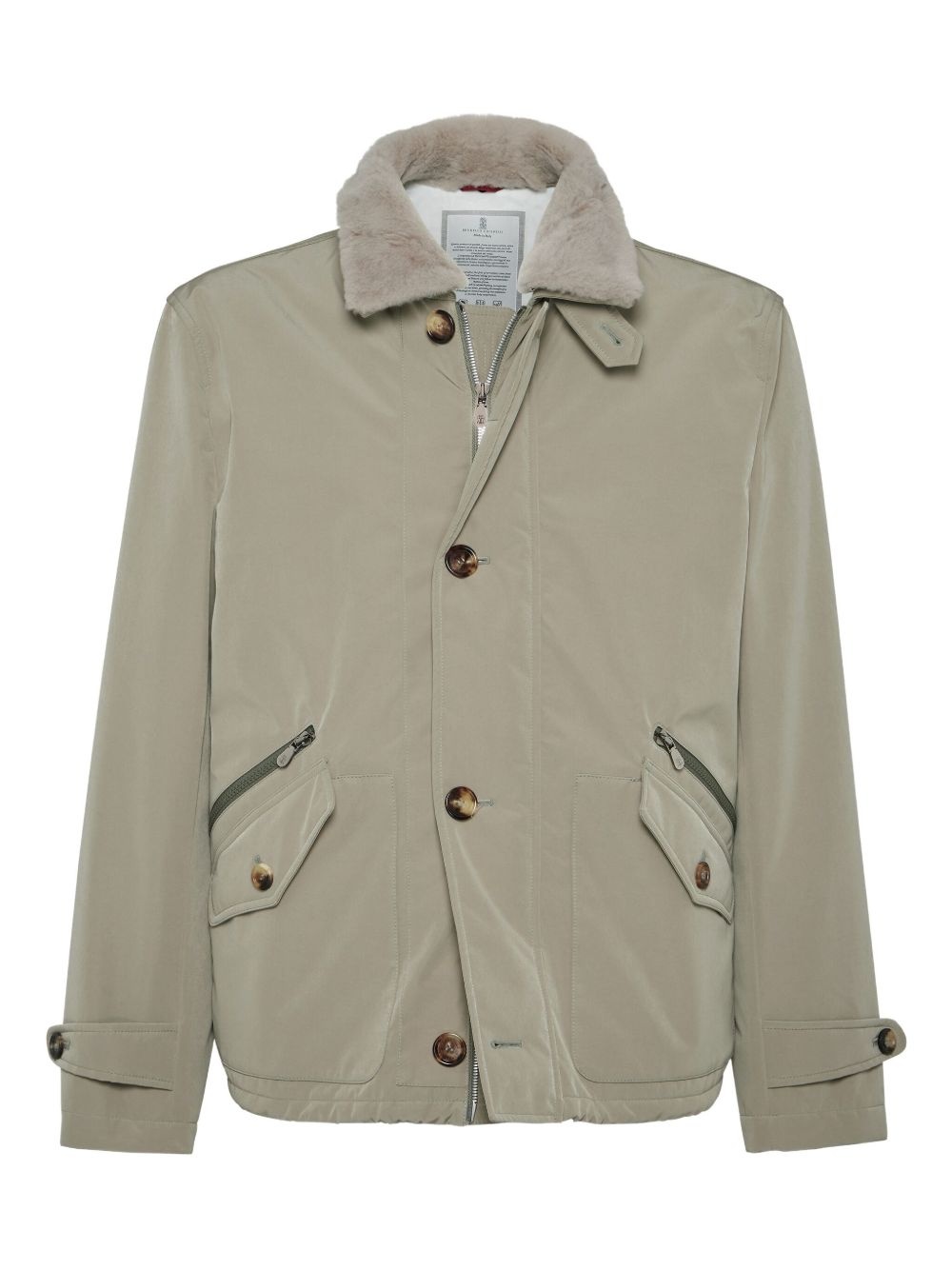 Bonded nylon outerwear jacket with detachable shearling insert and Thermore® padding
