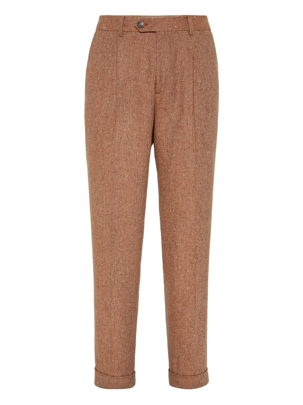 Wool and cashmere flecked chevron leisure fit trousers with pleat