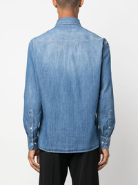 button-up cotton denim shirt Highlights - Blue - Cotton - Washed denim - Spread collar - Front press-stud fastening - Long sleeves - Buttoned cuffs - Two chest flap pockets - Straight hem Made in Italy Composition Cotton 100% SIZE & FIT Model measurements Height 6 ft 2 in(1.87 m) Bust/Chest 38.18 in(97 cm) Hips 36.61 in(93 cm) Waist 29.13 in(74 cm) Measurement CHEST 40.94 in(104 cm) SLEEVE LENGTH 33.07 in(84 cm) Shoulder Width 17.91 in(45.5 cm) FittingInformation Designed to be unstructured, offering a loose fit throughout Sturdy and hard-wearing, this denim piece offers no stretch This piece fits true to size – take your usual size Washing instructions Hand Wash