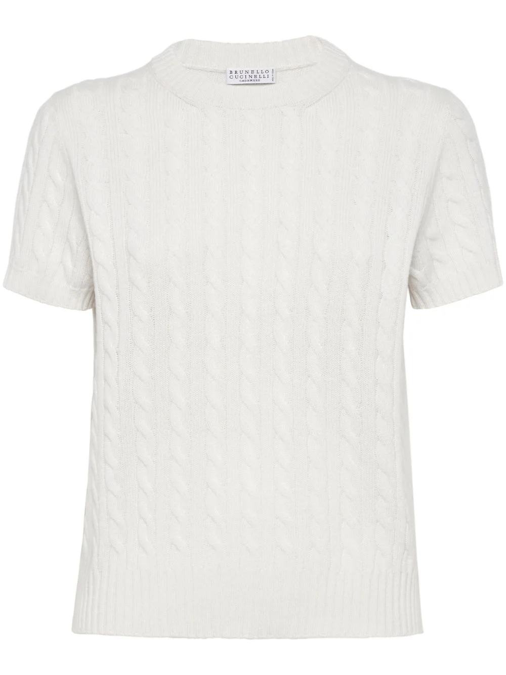 cable-knit cashmere top Highlights - White - Cashmere - Cable knit - Crew neck - Short sleeves - Ribbed hem - Straight hem Made in Italy Composition Cashmere 100% Washing instructions Read Manufacturer Guidelines