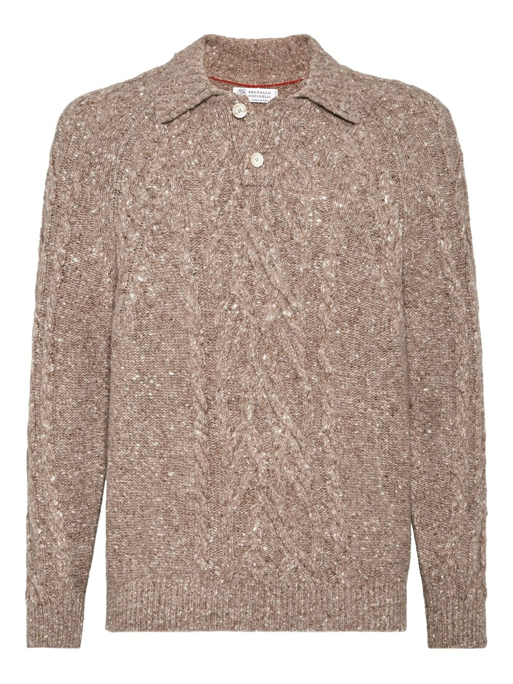 cable-knit polo sweater Highlights - Hazelnut brown - Cable knit - Polo collar - Three button placket - Long sleeves - Speckled effect Made in Italy Composition Cashmere 100% Washing instructions Read Manufacturer Guidelines