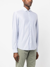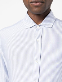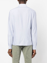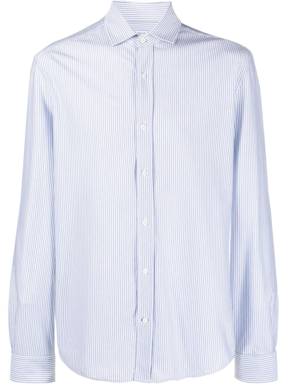 candy-stripe long-sleeve shirt sky blue/cloud white cotton candy stripe print classic collar front button fastening long sleeves buttoned cuffs curved hem Made in Italy Composition Cotton 100% SIZE & FIT Model measurements Height 6 ft 2 in(1.88 m) Bust/Chest 36.61 in(93 cm) Hips 35.82 in(91 cm) Waist 27.95 in(71 cm) FittingInformation This piece fits true to size. We recommend you get your regular size Cut for a slim fit Made with a mid-weight non-stretch fabric Washing instructions Hand Wash
