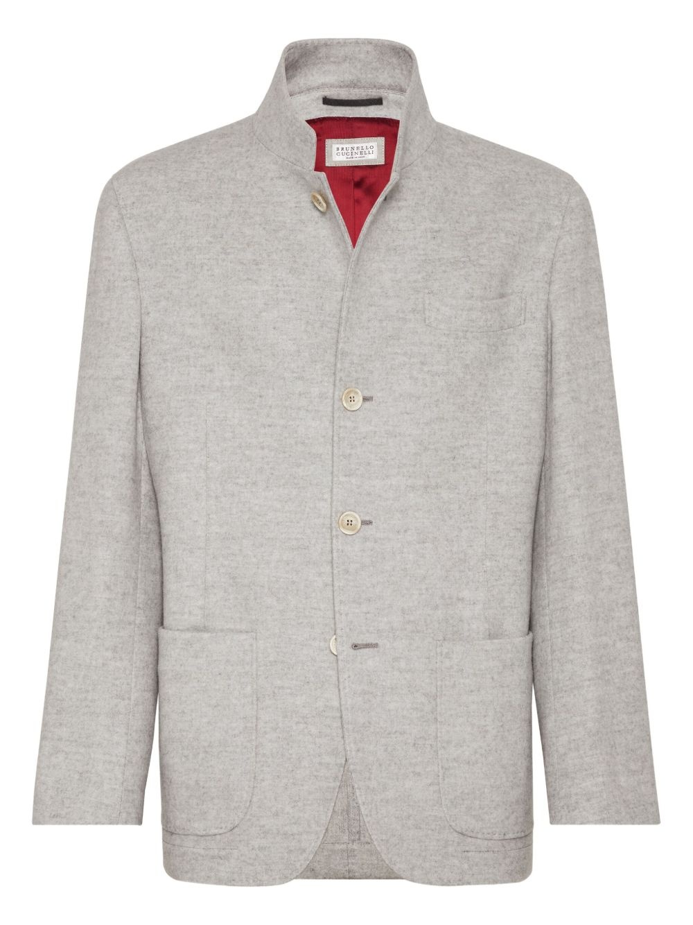 cashmere blazer Highlights - Ash grey - Front button fastening - Chest welt pocket - Two side patch pockets - Stand-up collar Made in Italy Composition Lining: Cupro 100% Outer: Cashmere 100% Washing instructions Read Manufacturer Guidelines