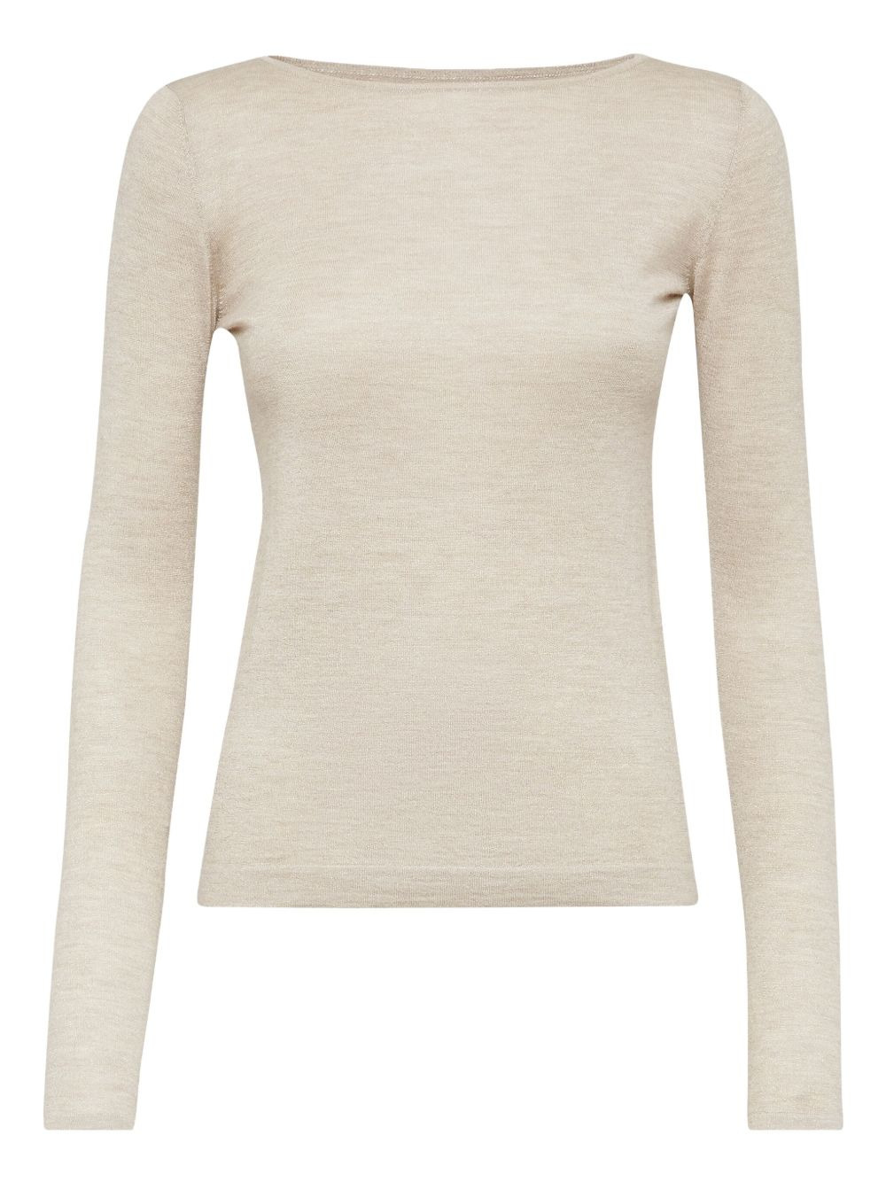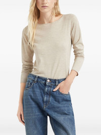 cashmere-blend jumper Defined by its nautical-inspired boat neck, this beige jumper from Brunello Cucinelli is finely knitted in Italy from cashmere and silk. It's elevated by a dappled melange effect throughout. Highlights - Beige - Cashmere-silk blend - Melange effect - Boat neck - Long sleeves - Straight hem Made in Italy Composition Cashmere 51%, Silk 22%, Polyamide 20%, Metallized Polyester 7% SIZE & FIT Measurement LENGTH 23.62 in(60 cm) WAIST 32.28 in(82 cm) FittingInformation Designed for a slim fit that sits just away from the body offering a close yet comfortable fit Made with a lightweight knit, this piece offers some stretch This piece fits true to size – take your usual size
