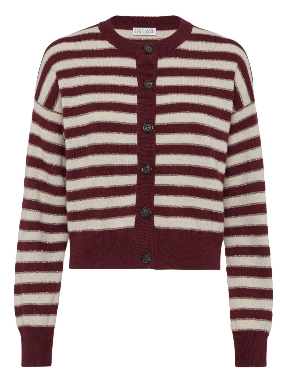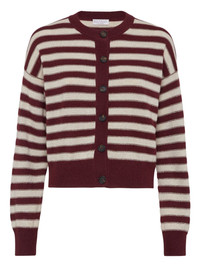 cashmere cardigan Highlights - Dark red - Front button fastening - Crew neck - Long sleeves - Horizontal stripe pattern Made in Italy Composition Cashmere 100%