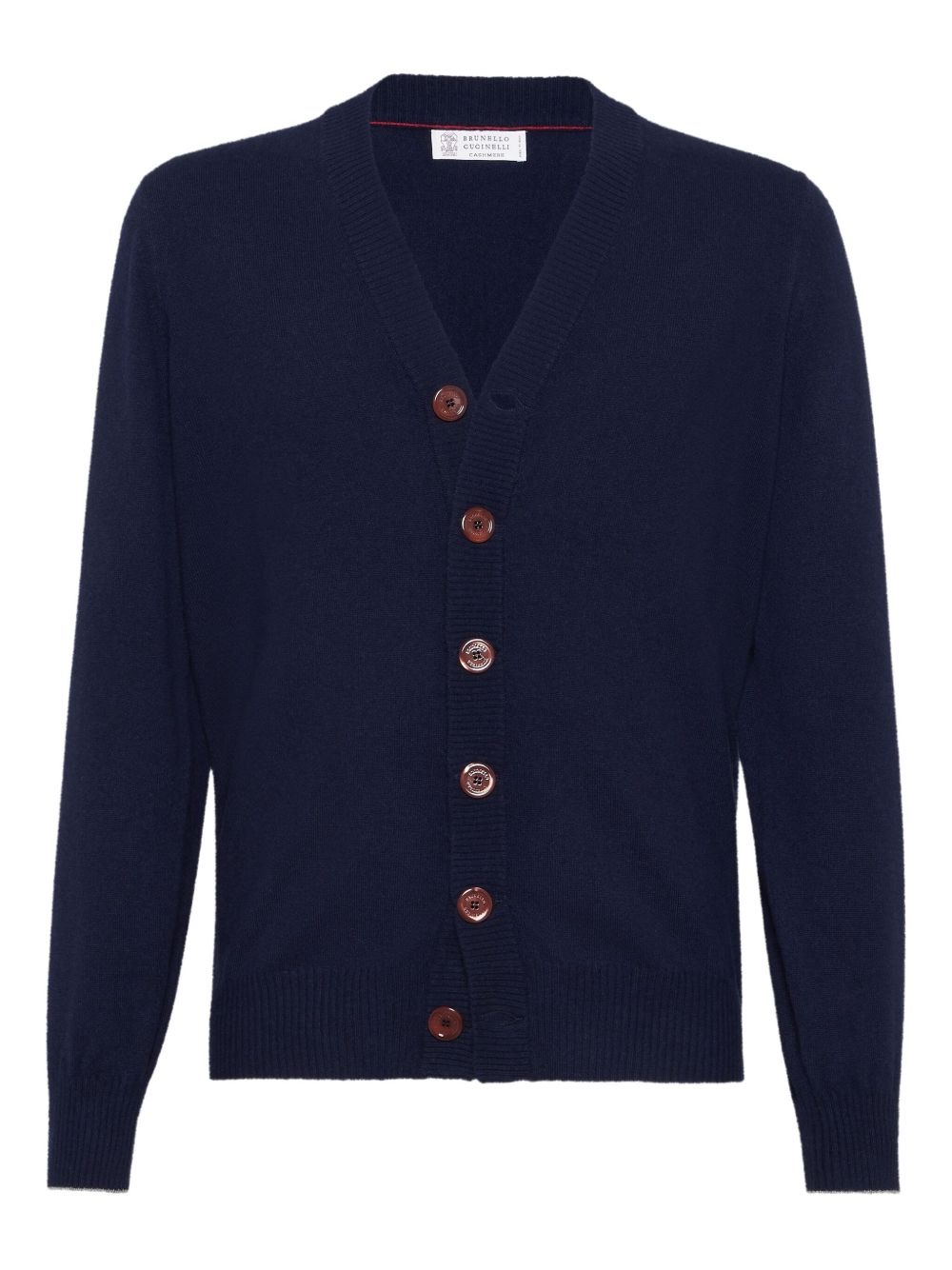 cashmere cardigan Highlights - Navy blue - V-neckline - Button front fastening - Ribbed cuffs and hem - Long sleeves Made in Italy Composition Cashmere 100% Washing instructions Hand Wash