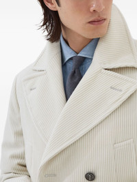 Cashmere wide wale corduroy one-and-a-half-breasted coat with patch pockets and metal buttons