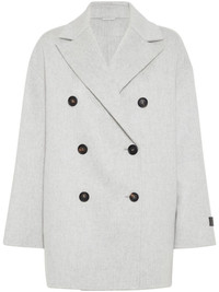 cashmere double-breasted coat Highlights - Dove grey - Cashmere - Applique logo - Notched lapels - Double-breasted button fastening - Long sleeves - Buttoned-cuff sleeves Made in Italy Composition Cashmere 100%