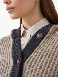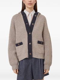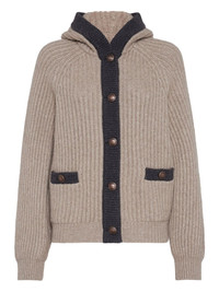 English rib hooded cardigan in cashmere Feather yarn with metal buttons
