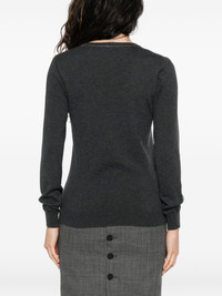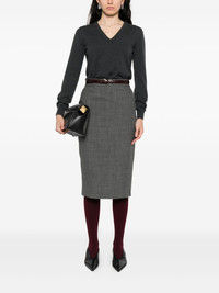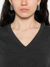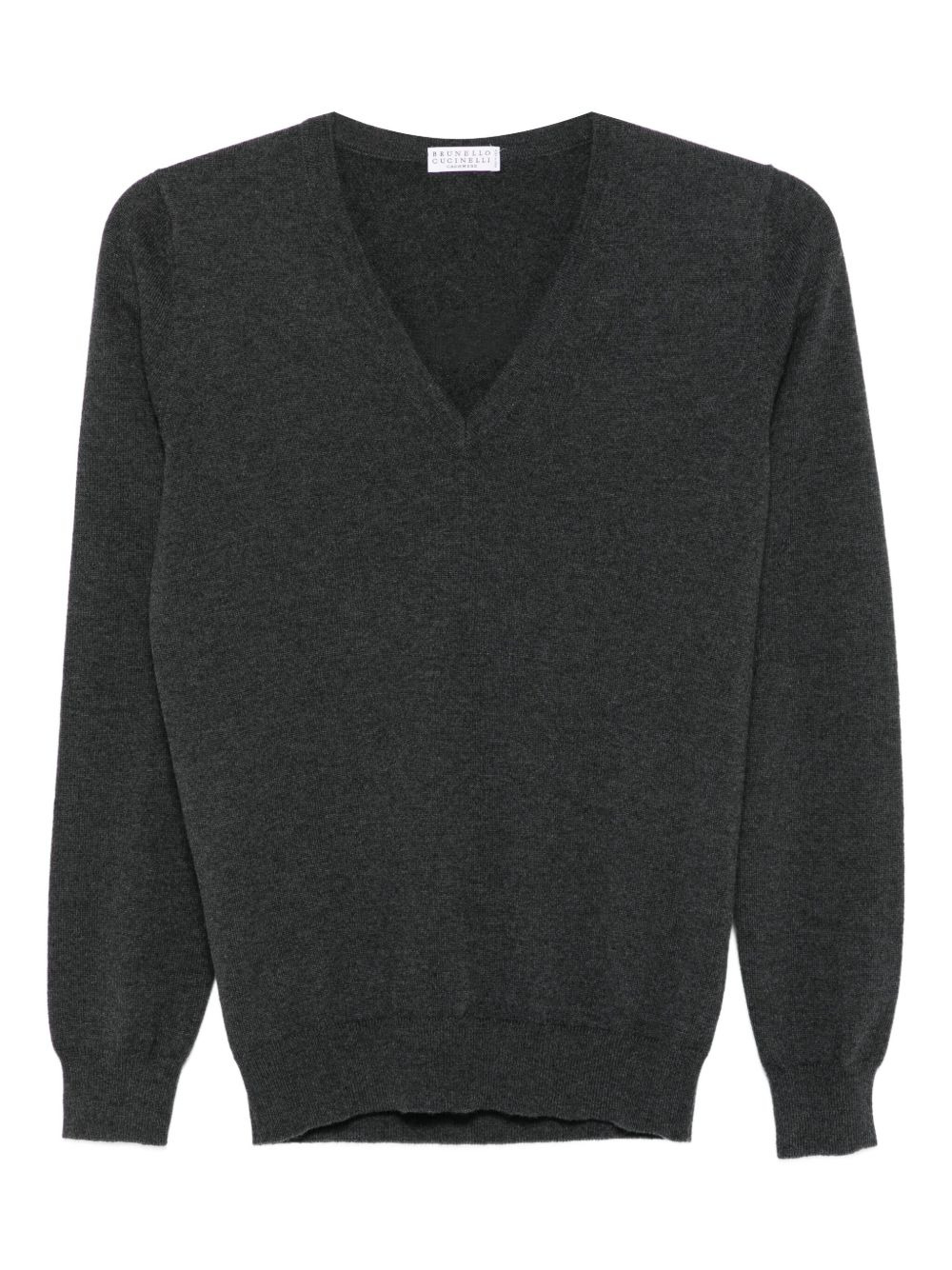 cashmere fine-knit jumper Highlights - Grey - Cashmere-eco brass blend - V-neck - Fine knit - Long sleeves Made in Italy Composition Cashmere 100%, Eco Brass 100% SIZE & FIT Model measurements Height 5 ft 9 in(1.75 m) Bust/Chest 32.67 in(83 cm) Hips 36.22 in(92 cm) Waist 24.8 in(63 cm) FittingInformation This piece fits true to size. We recommend you get your regular size Cut for a relaxed fit Made with a mid-weight fabric Washing instructions Hand Wash