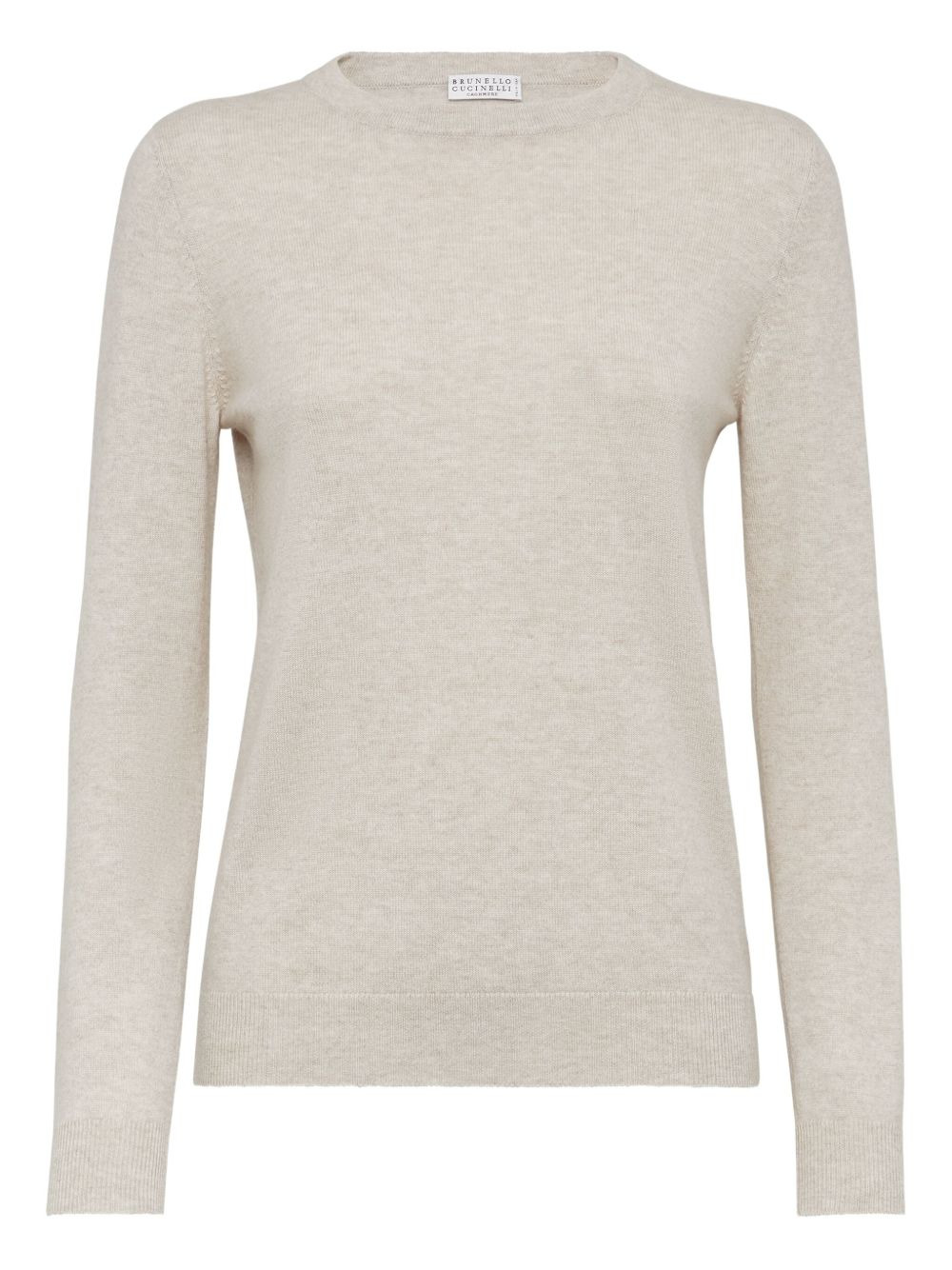 cashmere fitted jumper Highlights - Beige - Cashmere - Slim fit - Round neck - Long sleeves - Fitted-cuff sleeves Made in Italy Composition Cashmere 100% SIZE & FIT FittingInformation This piece fits true to size. We recommend you get your regular size Cut for a relaxed fit Made with a mid-weight fabric Washing instructions Hand Wash