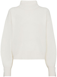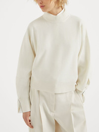 cashmere moch-neck Highlights - White - Cashmere - Ribbed knit - Mock neck - Long sleeves - Short slit sleeves - Ribbed cuffs and hem Made in Italy Composition Cashmere 100%