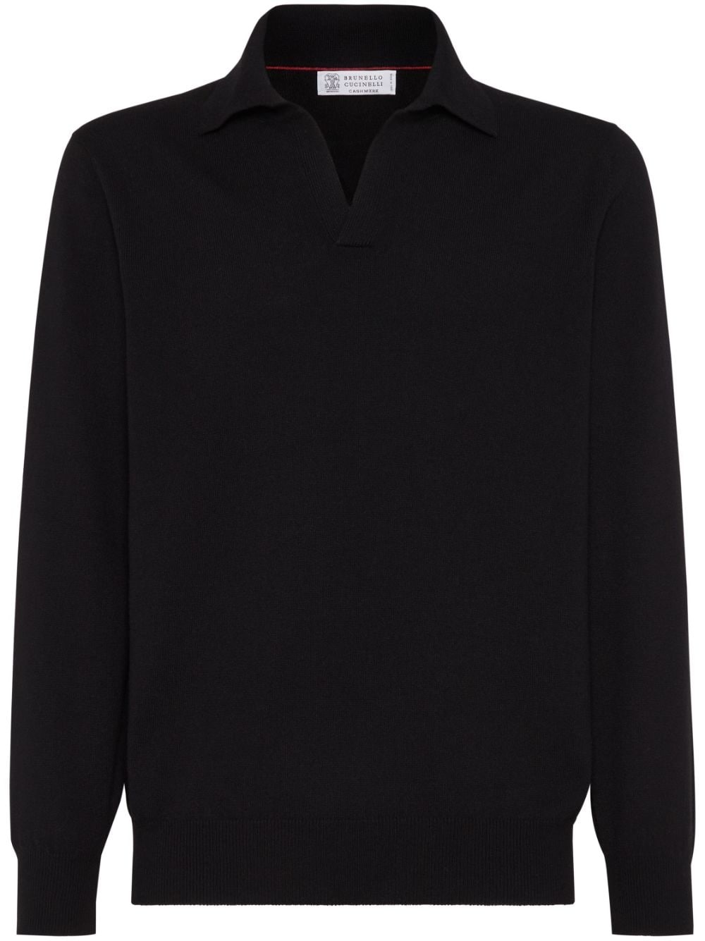 cashmere polo shirt Highlights - Black - Cashmere - Knitted construction - Spread collar - V-neck - Drop shoulder - Long sleeves - Ribbed cuffs and hem - Straight hem Made in Italy Composition Cashmere 100% Washing instructions Read Manufacturer Guidelines
