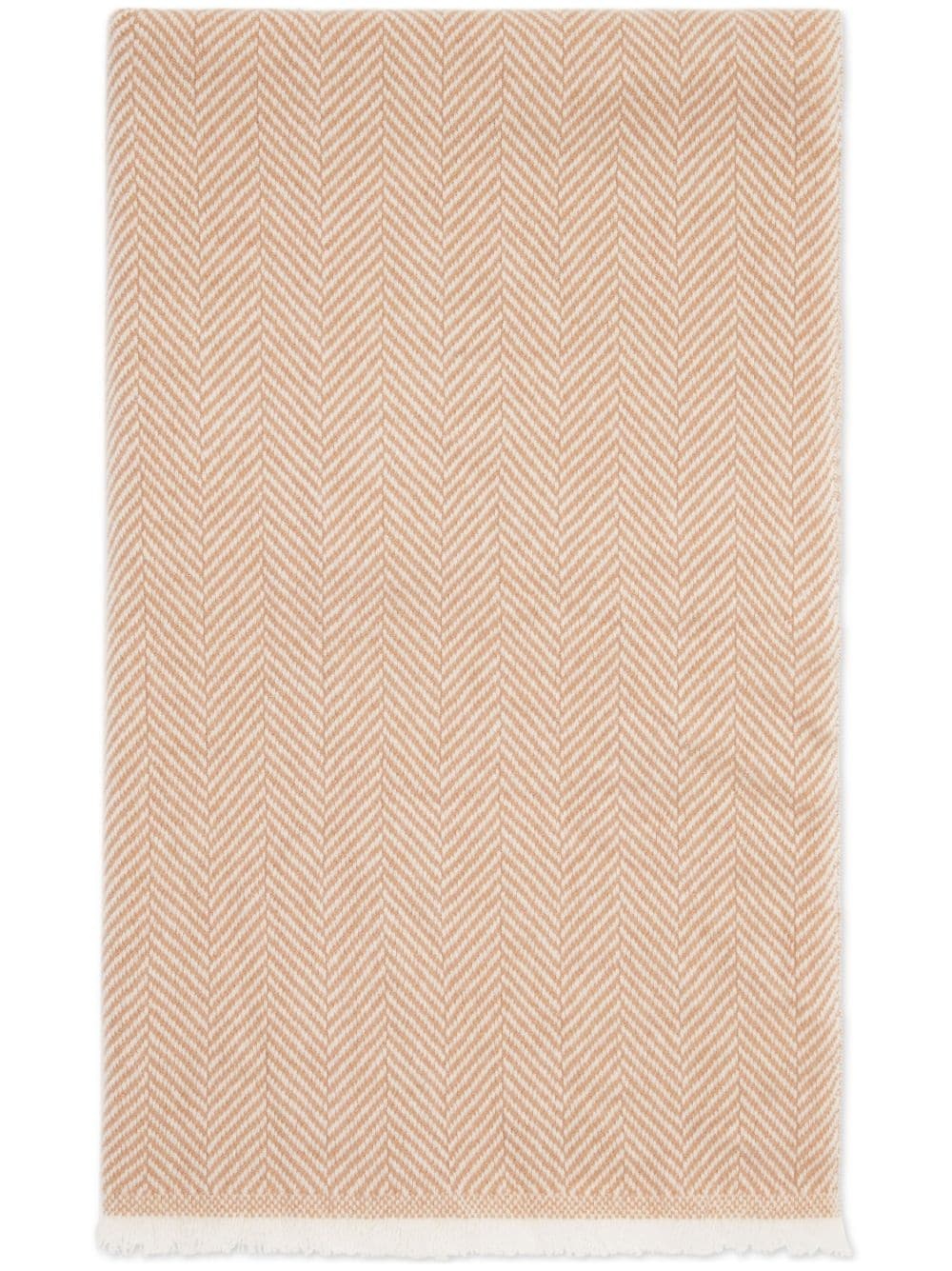 cashmere scarf Highlights - Beige/white - Cashmere - Fine knit - Herringbone pattern - Frayed edge Made in Italy Composition Cashmere 100% SIZE & FIT Measurement LENGTH 55.11 in(140 cm) WIDTH 17.71 in(45 cm)