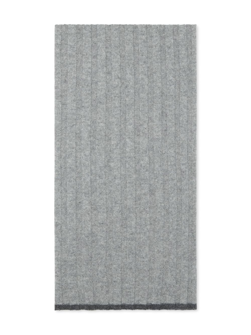 cashmere scarf Highlights - Heather grey - Ribbed knit - Contrasting trim - Finished edge - Rectangle shape Made in Italy Composition Cashmere 100% SIZE & FIT Measurement LENGTH 65.74 in(167 cm) WIDTH 11.81 in(30 cm)