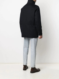 cashmere single-breasted coat navy blue cashmere high neck classic hood chest welt pockets concealed front zip fastening two front welt pockets long sleeves padded panels full lining Made in Italy Composition Cashmere 100%, Silk 60%, Cotton 40% Lining: Polyester 100%, Nylon 100% SIZE & FIT Model measurements Height 6 ft 1 in(1.85 m) Bust/Chest 35.82 in(91 cm) Hips 37.79 in(96 cm) Waist 29.13 in(74 cm) FittingInformation This piece fits true to size. We recommend you get your regular size Cut for a loose fit Made with a mid-weight non-stretch fabric Washing instructions Dry Clean Only