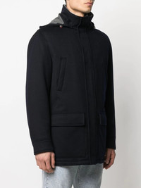 Bonded cashmere beaver cloth parka with Thermore® padding and detachable hood