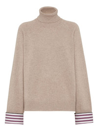 cashmere sweater Highlights - Light brown - Roll neck - Long raglan sleeves - Stripe trim - Ribbed trim Made in Italy Composition Cashmere 100%