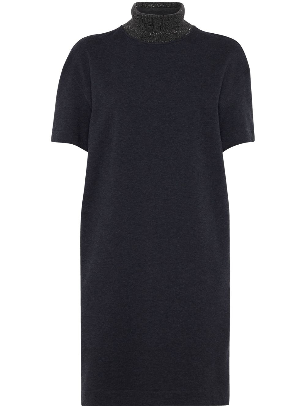 chain link-detail dress Highlights - Anthracite grey - Stretch-cotton - Chain-link detailing - High neck - Short sleeves - Two side inset pockets - Straight hem - Knee-length Made in Italy Composition Cotton 98%, Spandex/Elastane 2%