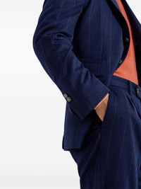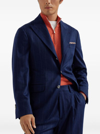 Wool and cashmere wide chalk stripe flannel deconstructed blazer with large peak lapels and metal bu