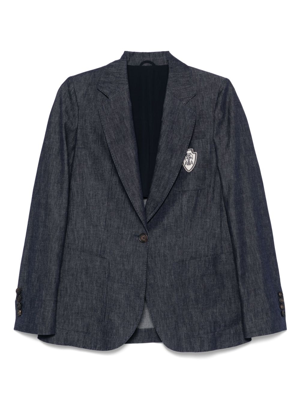 chambray blazer Highlights - Navy blue - Front button fastening - Three front patch pockets - Buttoned-cuff sleeves - Central rear vent Made in Italy Composition Lining: Acetate 74%, Silk 26% Outer: Cotton 100%, Eco Brass 100% SIZE & FIT Model measurements Height 5 ft 9 in(1.75 m) Bust/Chest 31.88 in(81 cm) Hips 34.64 in(88 cm) Waist 24.01 in(61 cm) FittingInformation Designed for a slim fit that sits just away from the body offering a close yet comfortable fit The vented hem offers movement at the rear Made from a midweight non-stretch fabric