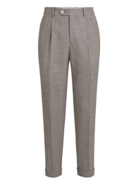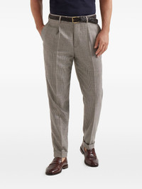 Virgin wool, silk and linen Prince of Wales trousers with pleat