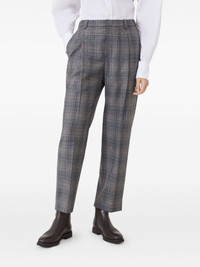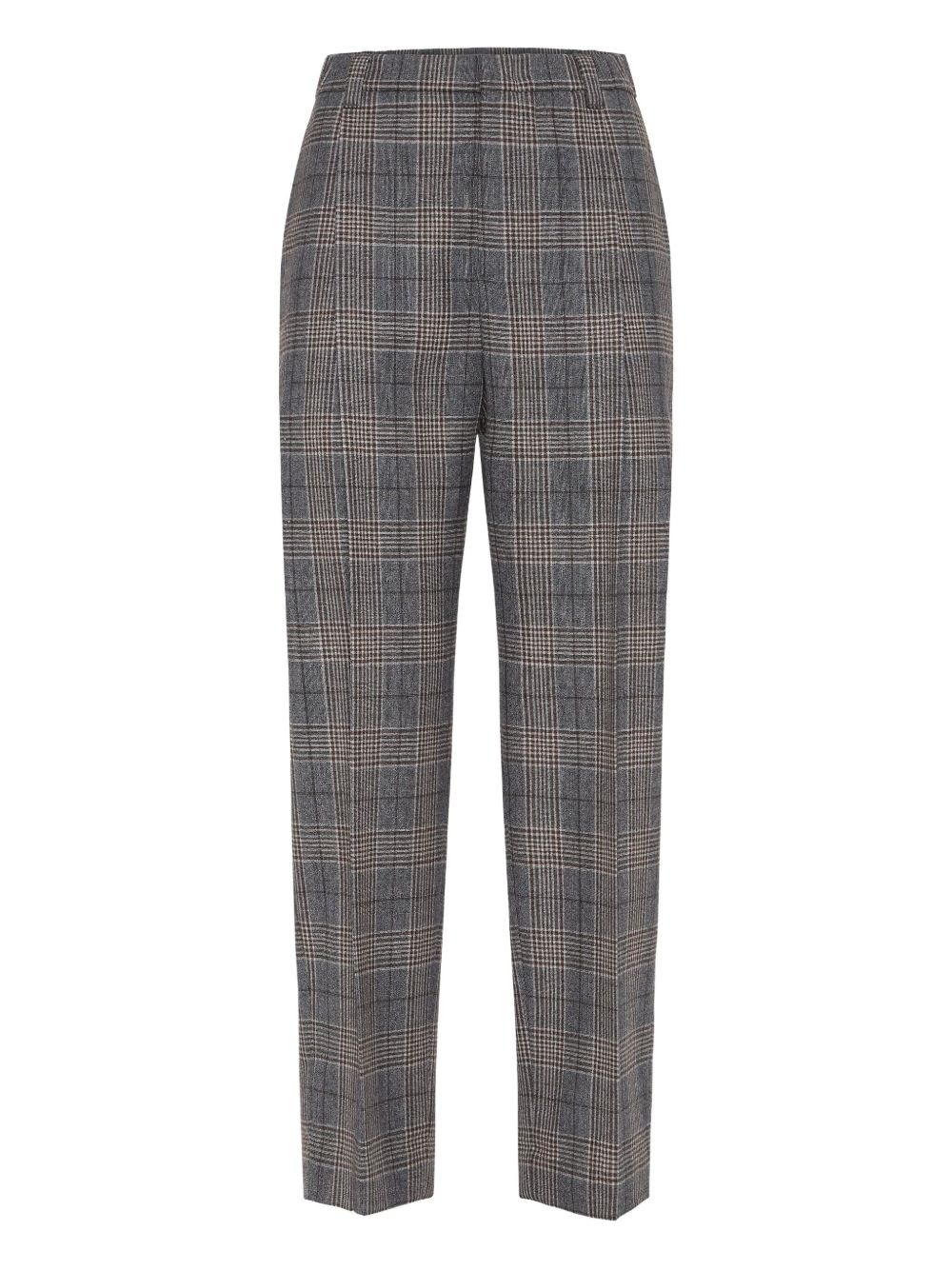 checked trousers Highlights - Grey - Check pattern - Rear elasticated waistband - Belt loops - Concealed front fastening Made in Italy Composition Virgin Wool 50%, Cotton 47%, Nylon 2%, Elastane 1%