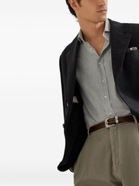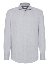 Stretch cotton chevron flannel slim fit shirt with spread collar