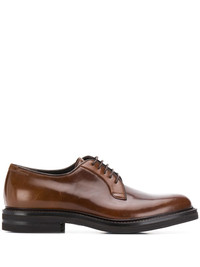 classic lace-up Derby shoes Brown leather classic lace-up Derby shoes from Brunello Cucinelli featuring a round toe, a lace-up front fastening, a contrast piped trim and a rubber sole. Made in Italy Composition Lining: Calf Leather 100% Sole: Rubber 100% Outer: Calf Leather 100% SIZE & FIT Measurement Sole height 0.78 in(2 cm) HEEL 1.37 in(3.5 cm)