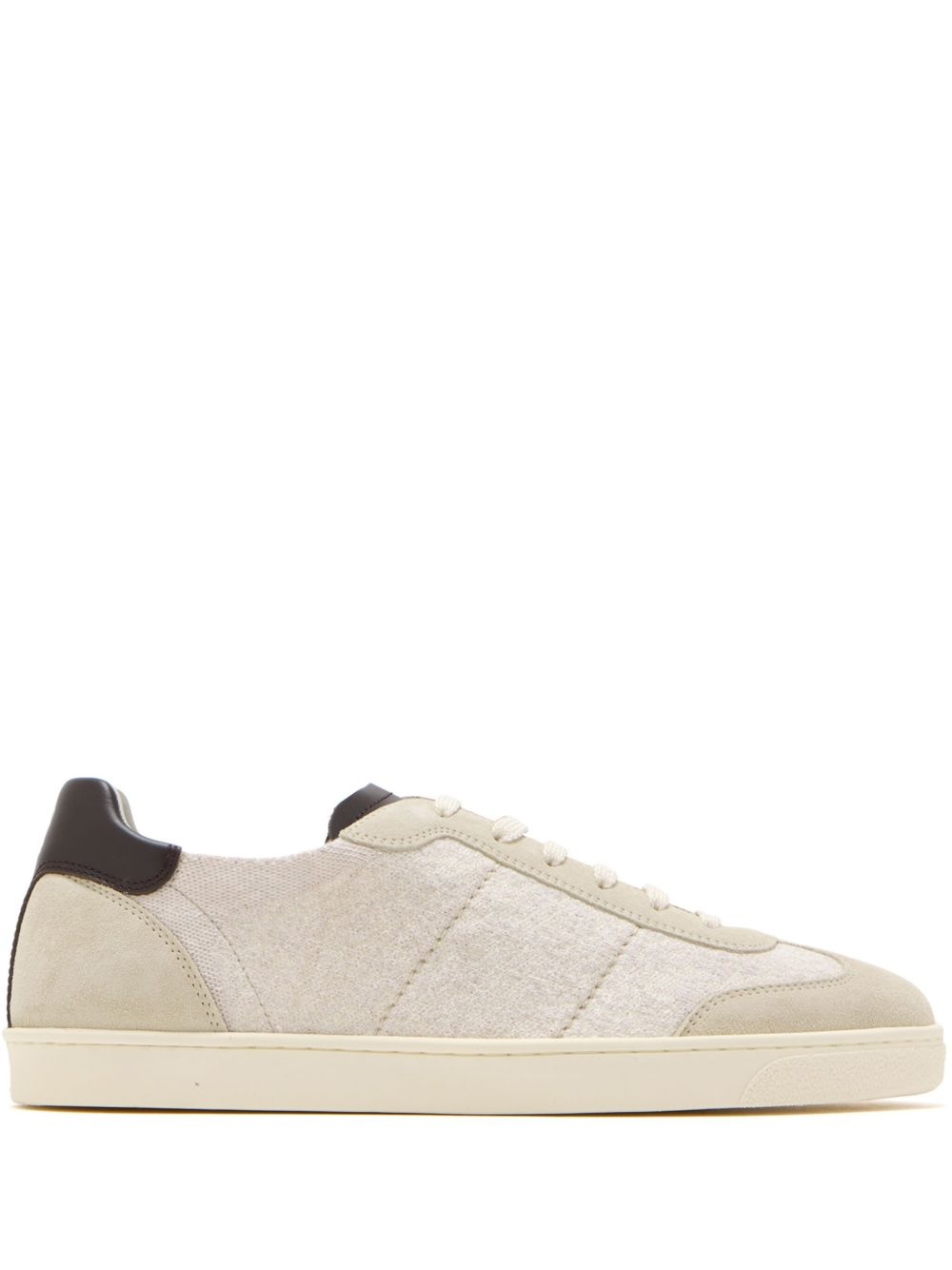 classic sneakers Highlights - Light beige - Front lace-up fastening - Logo-print tongue - Branded heel counter - Round toe Made in Italy Composition Sole: Rubber 100% Lining: Fabric 100% Outer: Cotton 100%, Calf Suede 100%