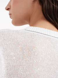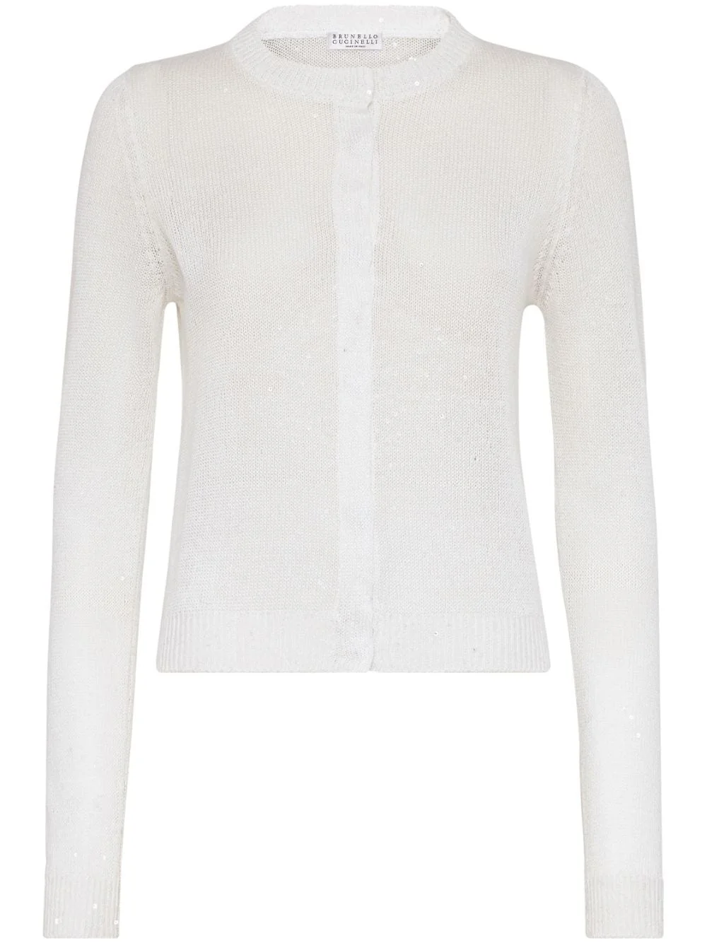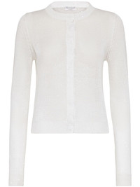concealed front fastening cardigan Highlights - White - Silk-linen blend - Crew neck - Concealed front fastening - Long sleeves - Ribbed cuffs - Ribbed hem. Made in Italy Composition Polyamide 100%, Eco Brass 100%, Linen/Flax 75%, Silk 25% SIZE & FIT Measurement SLEEVE LENGTH 25.19 in(64 cm) LENGTH 20.86 in(53 cm) Washing instructions Read Manufacturer Guidelines