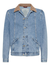 contrasting-collar denim jacket Highlights - Light blue - Front button fastening - Two side slit pockets - Buttoned-cuff sleeves - Adjustable side straps Made in Italy Composition Cotton 100%