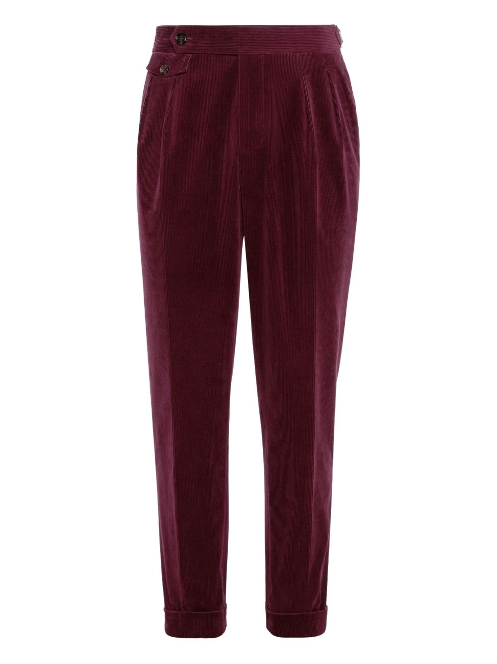 corduroy trousers Highlights - Burgundy - Pleat detailing - Buttoned pockets - Front zip and button fastening Made in Italy Composition Cotton 91%, Cashmere 8%, Fabric 1%