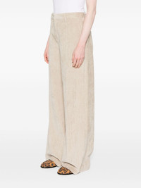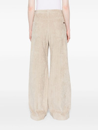 corduroy wide-leg trousers Highlights - Light beige - Cotton blend - Corduroy - Signature monili chain detail - Mid-rise - Belt loops - Concealed front fastening - Two side slit pockets - Logo patch to the rear - Wide leg Made in Italy Composition Lining: Polyester 36%, Acrylic 32%, Cupro 32% Outer: Eco Brass 100%, Leather 100%, Cotton 99%, Elastane 1% SIZE & FIT Model measurements Height 5 ft 9 in(1.74 m) Bust/Chest 34.64 in(88 cm) Hips 36.61 in(93 cm) Waist 26.37 in(67 cm) FittingInformation Designed with a wide-leg cut, these trousers allow for a close fit at the waist and offer a loose and roomy fit over the leg Made from a midweight stretch fabric, this piece offers elasticity and flexibility when worn This piece fits true to size – take your usual size Washing instructions Dry Clean Only