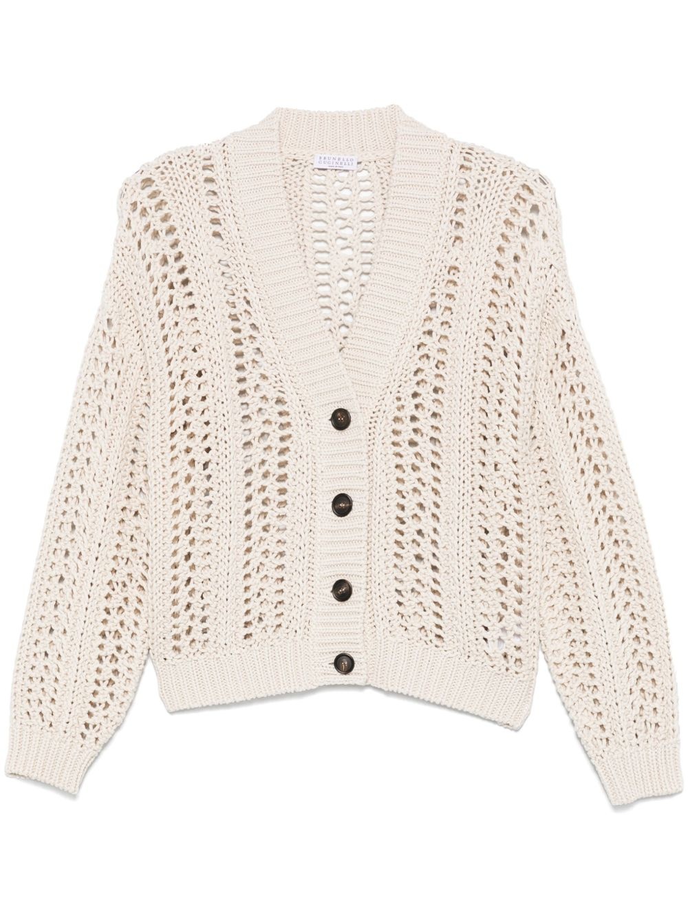 cotton cardigan Highlights - Light beige - Front button fastening - Ribbed v-neck - Drop shoulder - Long sleeves Made in Italy Composition Cotton 100% SIZE & FIT Model measurements Height 5 ft 10 in(1.79 m) Bust/Chest 31.88 in(81 cm) Hips 35.43 in(90 cm) Waist 23.62 in(60 cm) FittingInformation Designed for a relaxed fit, this piece allows for comfort and movement when worn Made with a midweight knit, this piece offers some stretch