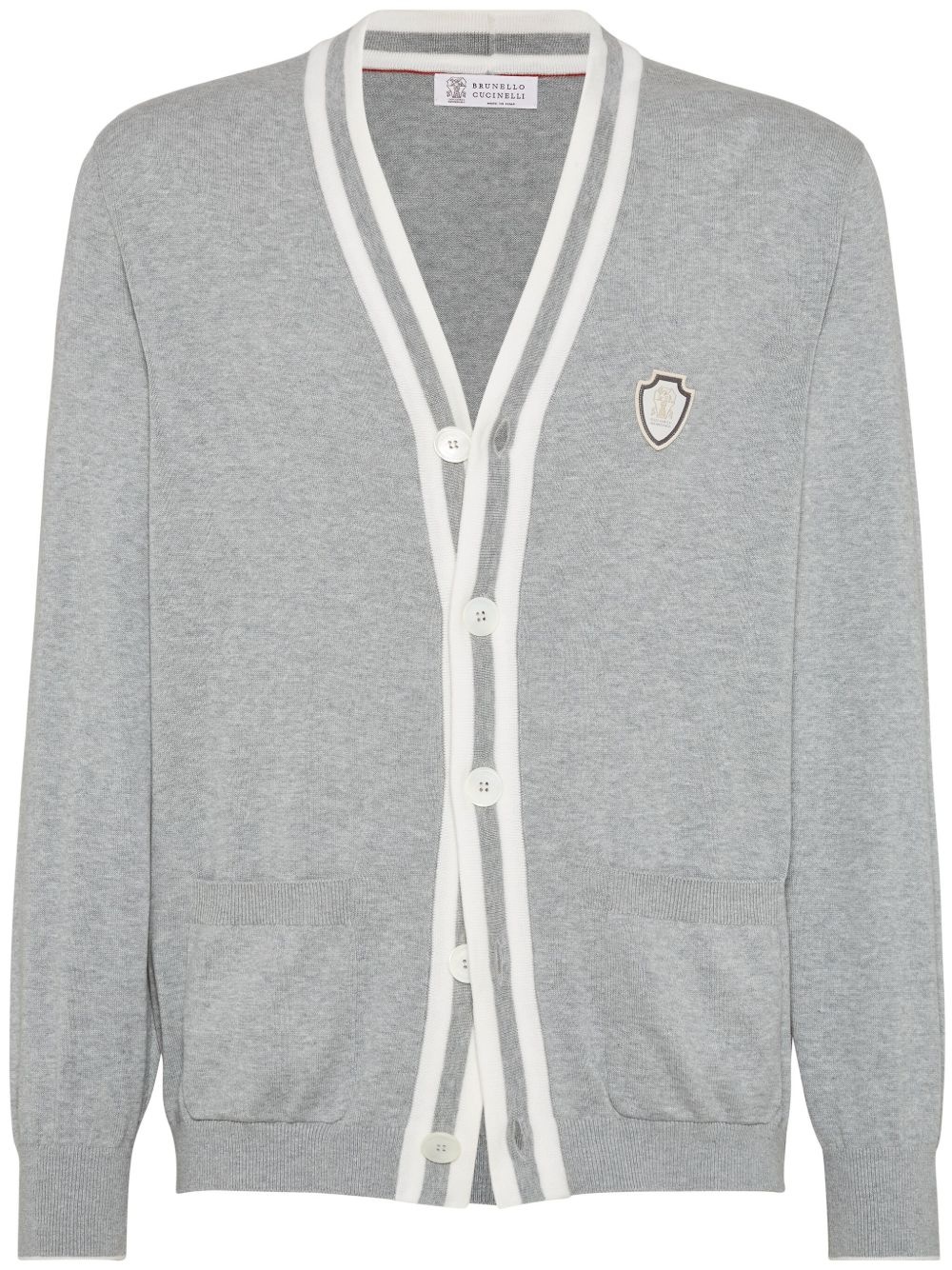 cotton cardigan Highlights - Light grey - Front button fastening - Two front patch pockets - Stripe detailing Made in Italy Composition Cotton 100%