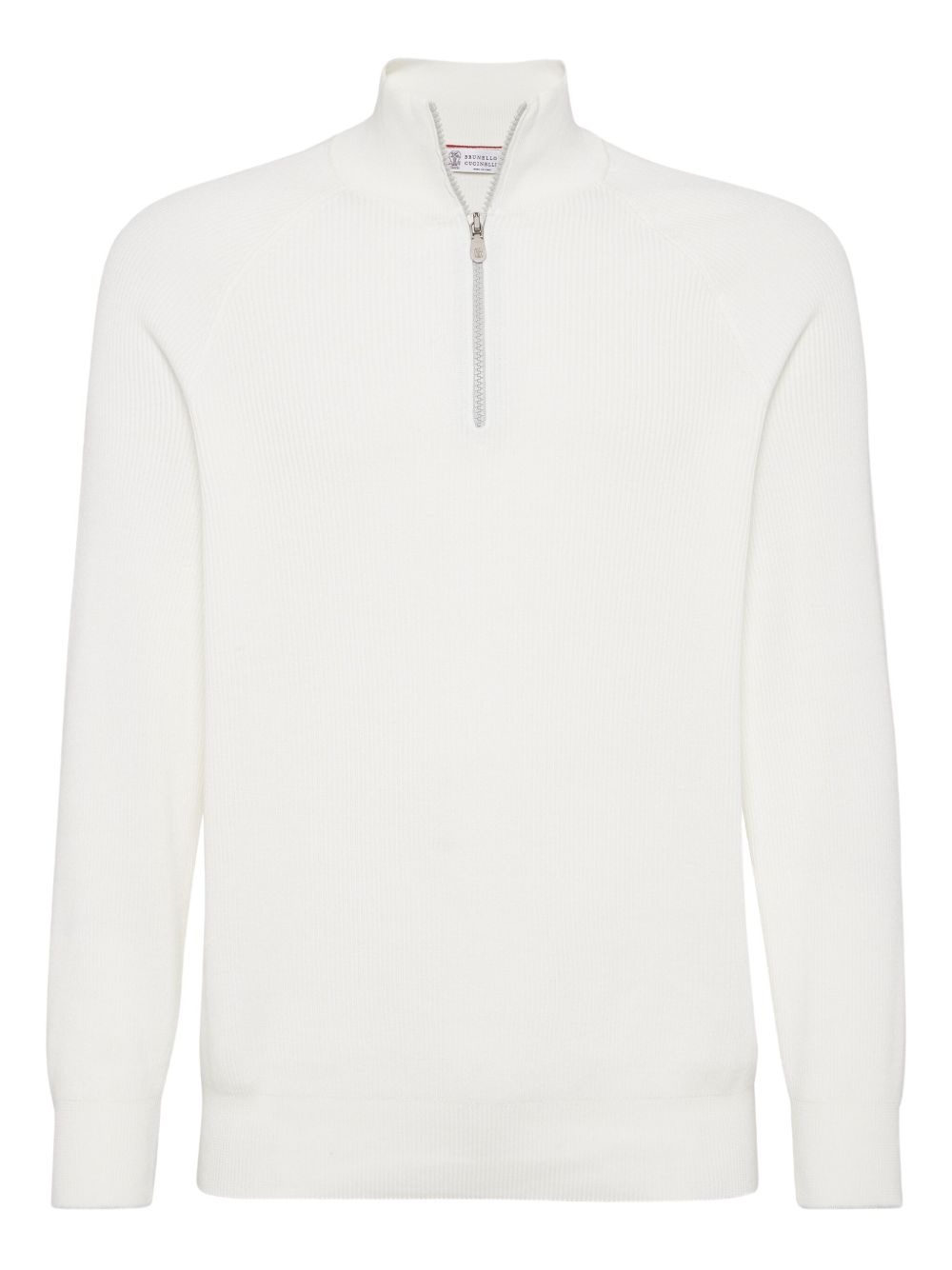 Cotton English rib sweater with half zip and raglan sleeves