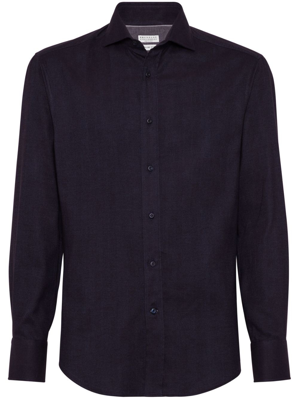 cotton-lyocell blend shirt Highlights - Midnight blue - Cotton-lyocell blend - Classic collar - Front button fastening - Long sleeves - Buttoned-cuff sleeves - Curved hem Made in Italy Composition Cotton 61%, Lyocell 39%