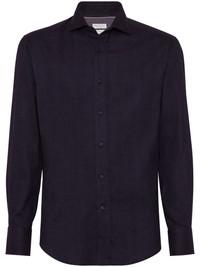 Stretch cotton chevron flannel slim fit shirt with spread collar